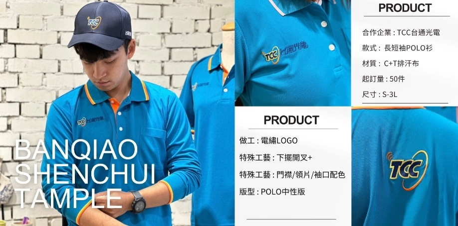 產品編號 : SC052 合作企業 : TCC台通光電 款式 : 長短袖POLO衫 材質 : 小PK排汗布 做工 : 電繡LOGO+門襟配色 特殊工藝 : YOKO袖+領片配色條紋設計 版型 : POLO男女版 基本起訂量 : 100件 尺寸規格 : S-2L(尺寸問題請洽客服)