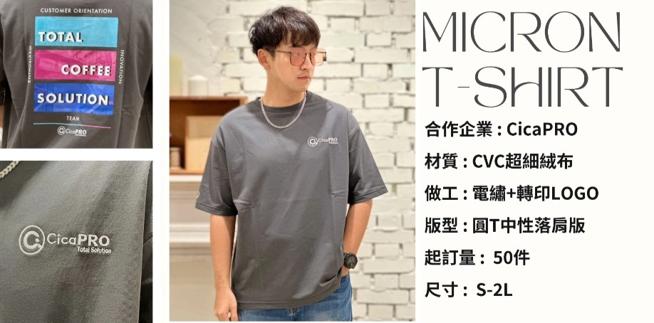 產品編號 : SG025 合作企業 : CicaPRO 款式 : 落肩款圓T 材質 : CVC超細絨布 做工 : 電繡+轉印 版型 : 中性版 基本起訂量 : 50件 尺寸規格 : S-2L(尺寸問題請洽客服)