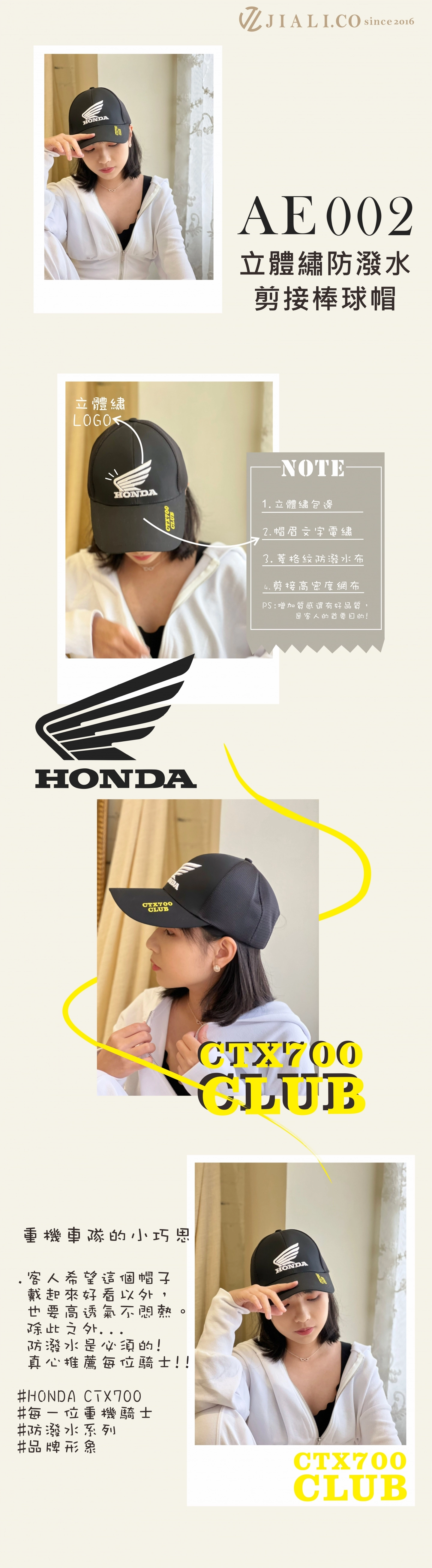 產品編號 : AB003 布料材質 : 菱格紋防潑水布+高密度網布 帽型款式 : 六片剪接棒球帽 產品特色 : 立體繡包邊加上帽眉文字電繡,使用菱格紋防潑水布與高密度網布剪接,讓舒適度更高,適合戶外活動。 起訂量 : 100頂