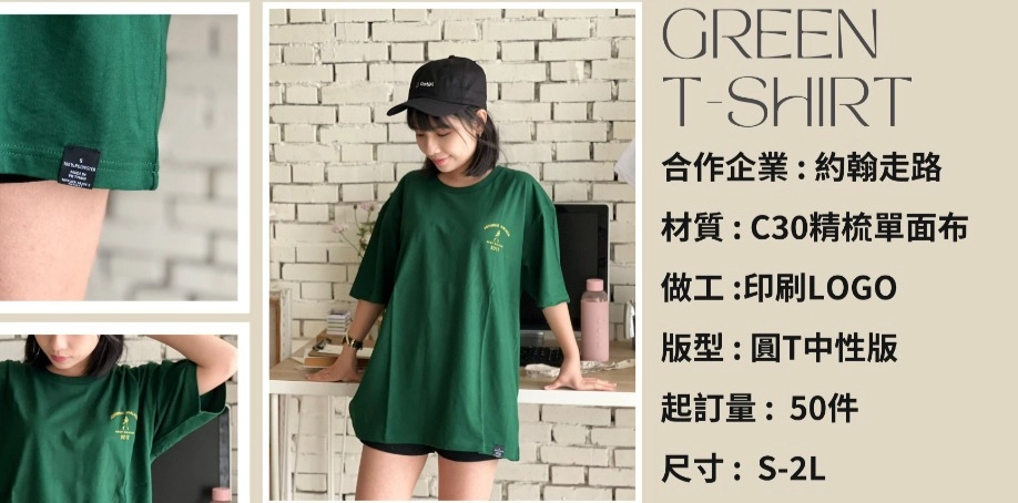 產品特色 : 胸前小標印刷,也可使用轉印工法,衣服下襬縫製織標