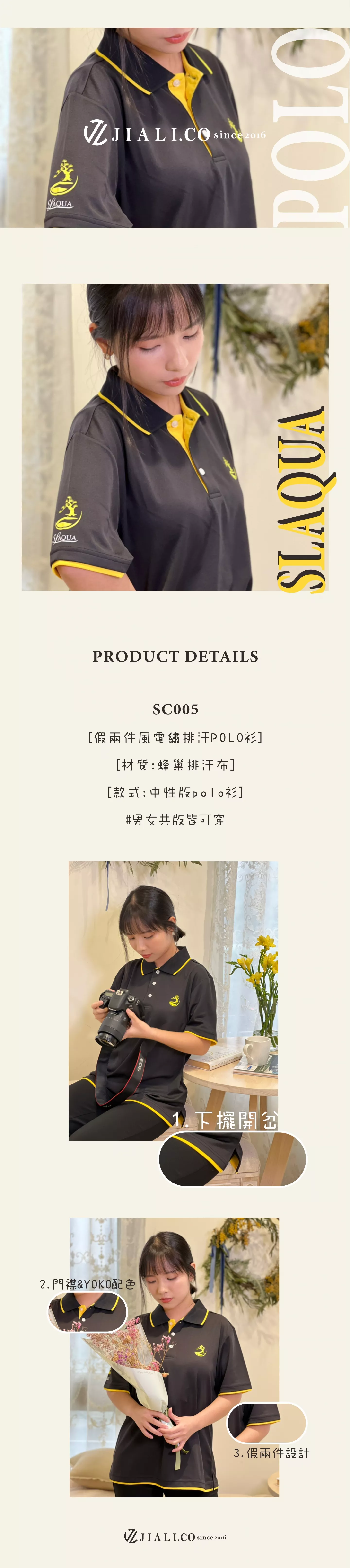 產品特色 : 假兩件設計,門襟配色顯得更有活力
