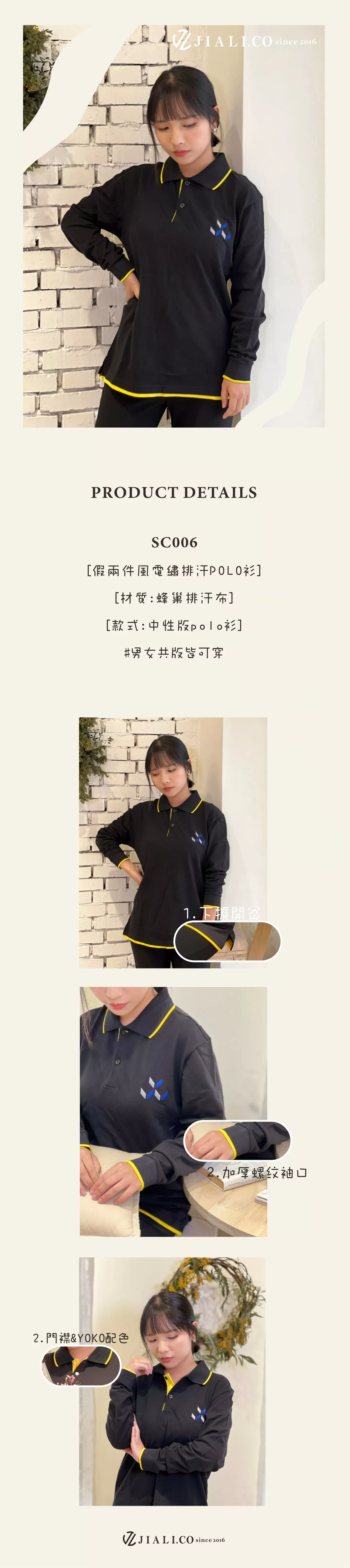 產品特色 : 假兩件設計,門襟配色顯得更有活力