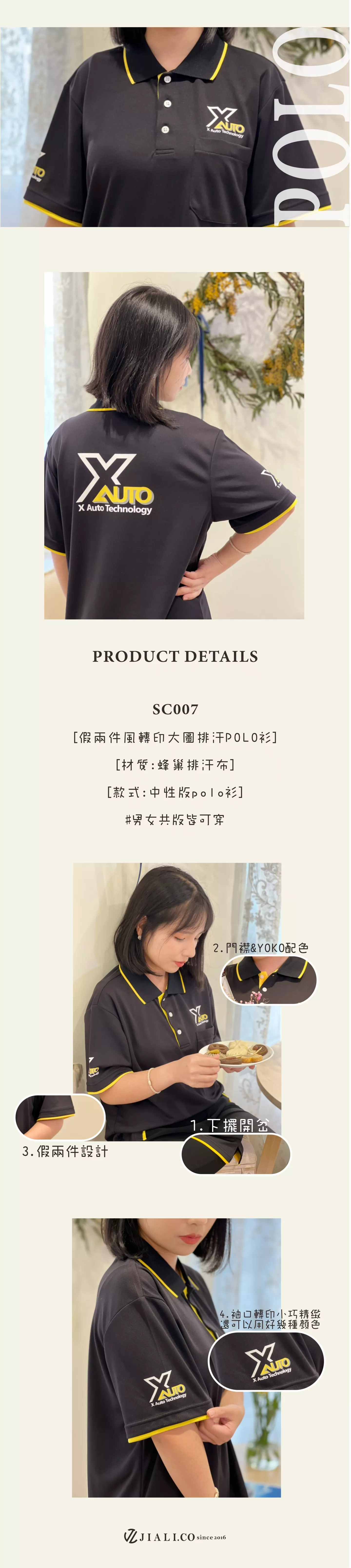 產品特色 : 假兩件設計,門襟配色顯得更有活力